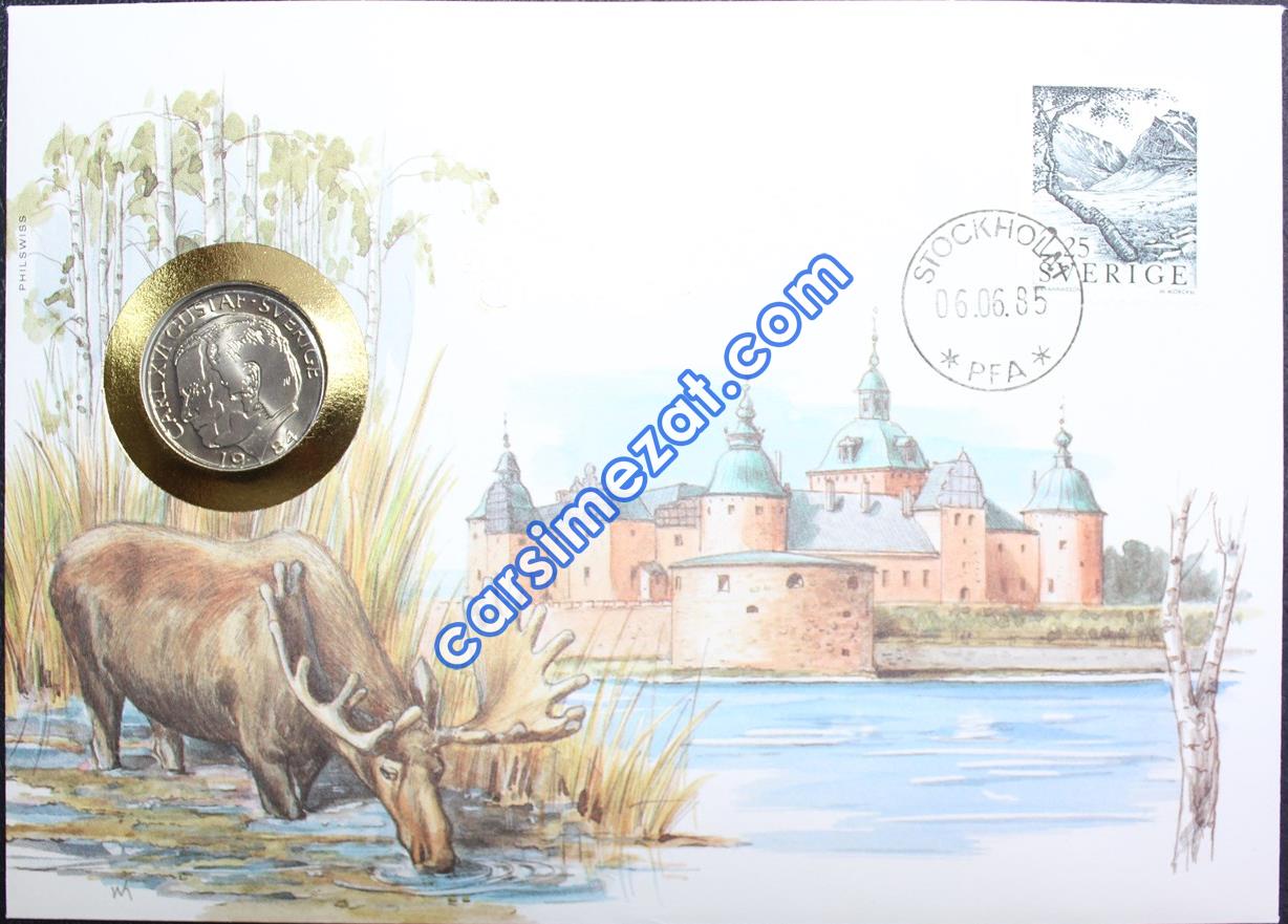 YABANCI MADENİ İSVEÇ İLK GÜN ZARFI HATIRA PARALI SERTİFİKALI ÇİL