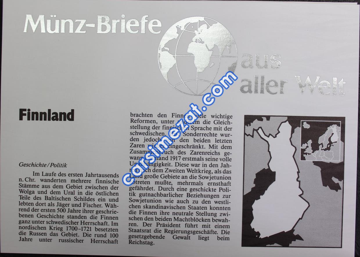 YABANCI MADENİ FİNLANDİYA İLK GÜN ZARFI HATIRA PARALI SERTİFİKALI ÇİL