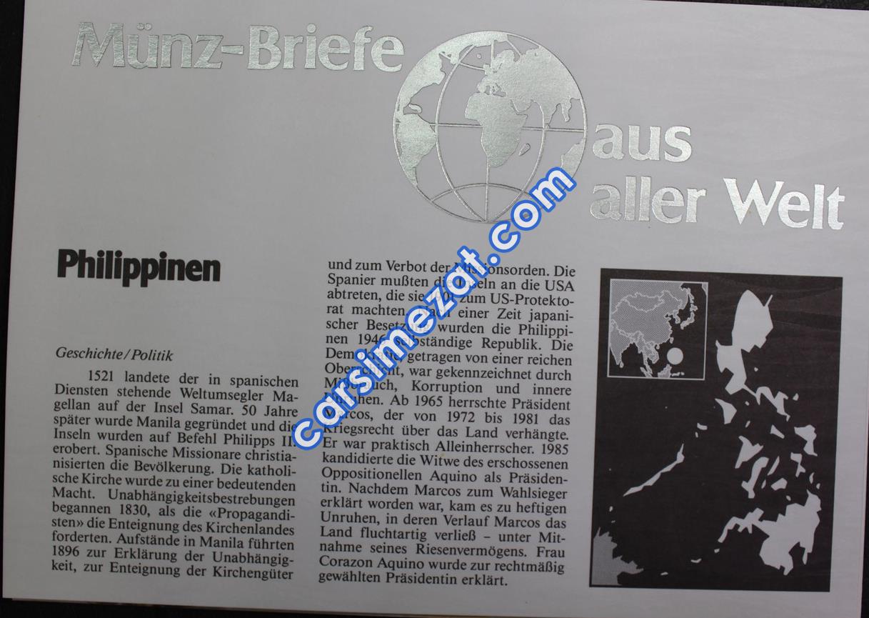 YABANCI MADENİ FİLİPİNLER İLK GÜN ZARFI HATIRA PARALI SERTİFİKALI ÇİL
