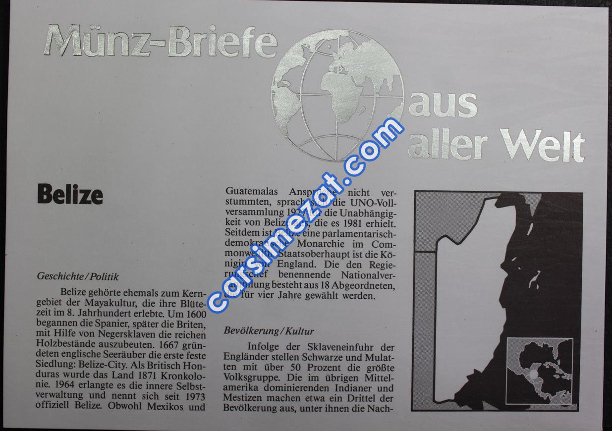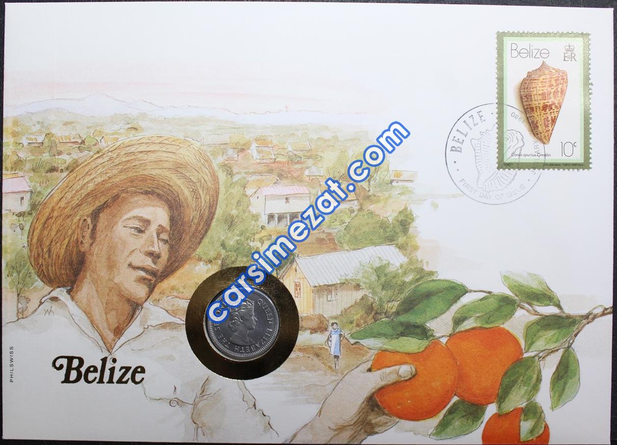 YABANCI MADENİ BELİZE İLK GÜN ZARFI HATIRA PARALI SERTİFİKALI ÇİL