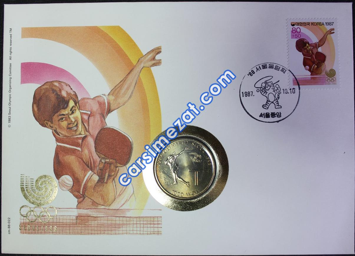 YABANCI MADENİ KORE SEUL OLİMPİYATLARI TENİS İLK GÜN ZARFI HATIRA 1000 WON 1988 SERTİFİKALI ÇİL