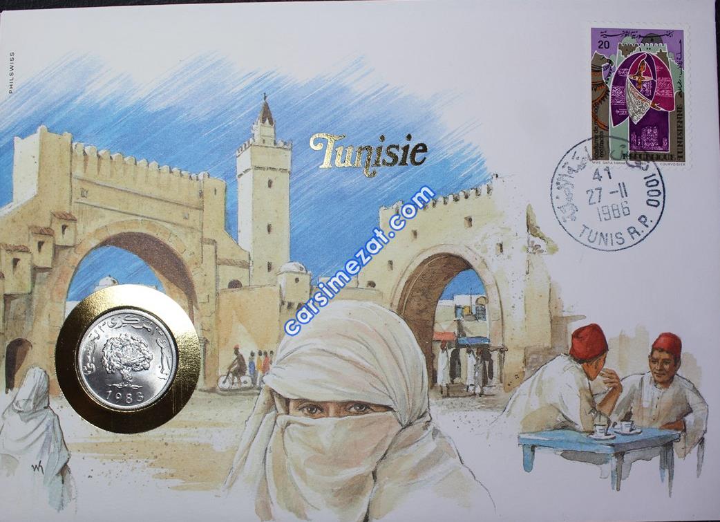 YABANCI MADENİ TUNUS İLK GÜN ZARFI HATIRA PARALI 1983 SERTİFİKALI ÇİL