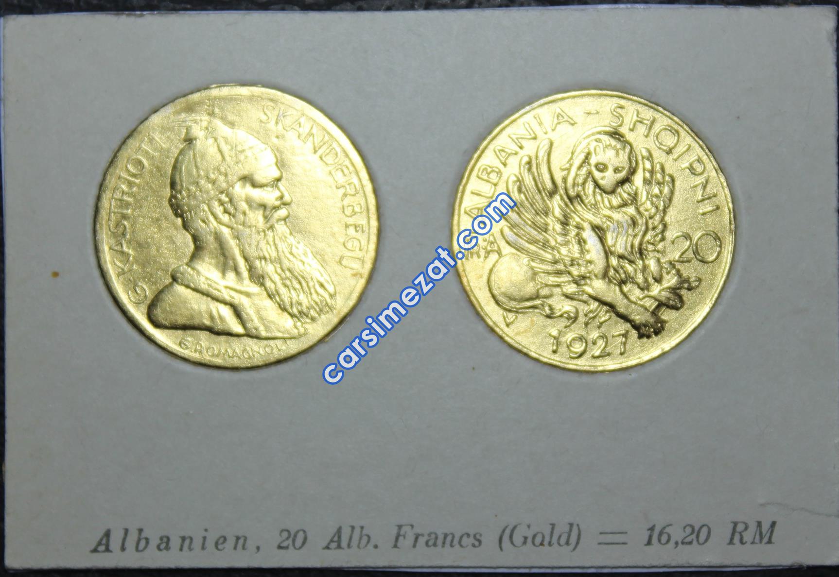 YABANCI MADENİ KOLEKSİYONERLER İÇİN 20. YÜZYIL BAŞINDA HAZIRLANAN ALTIN VARAK GOFRE ARNAVUTLUK 20 FRANGA 1927
