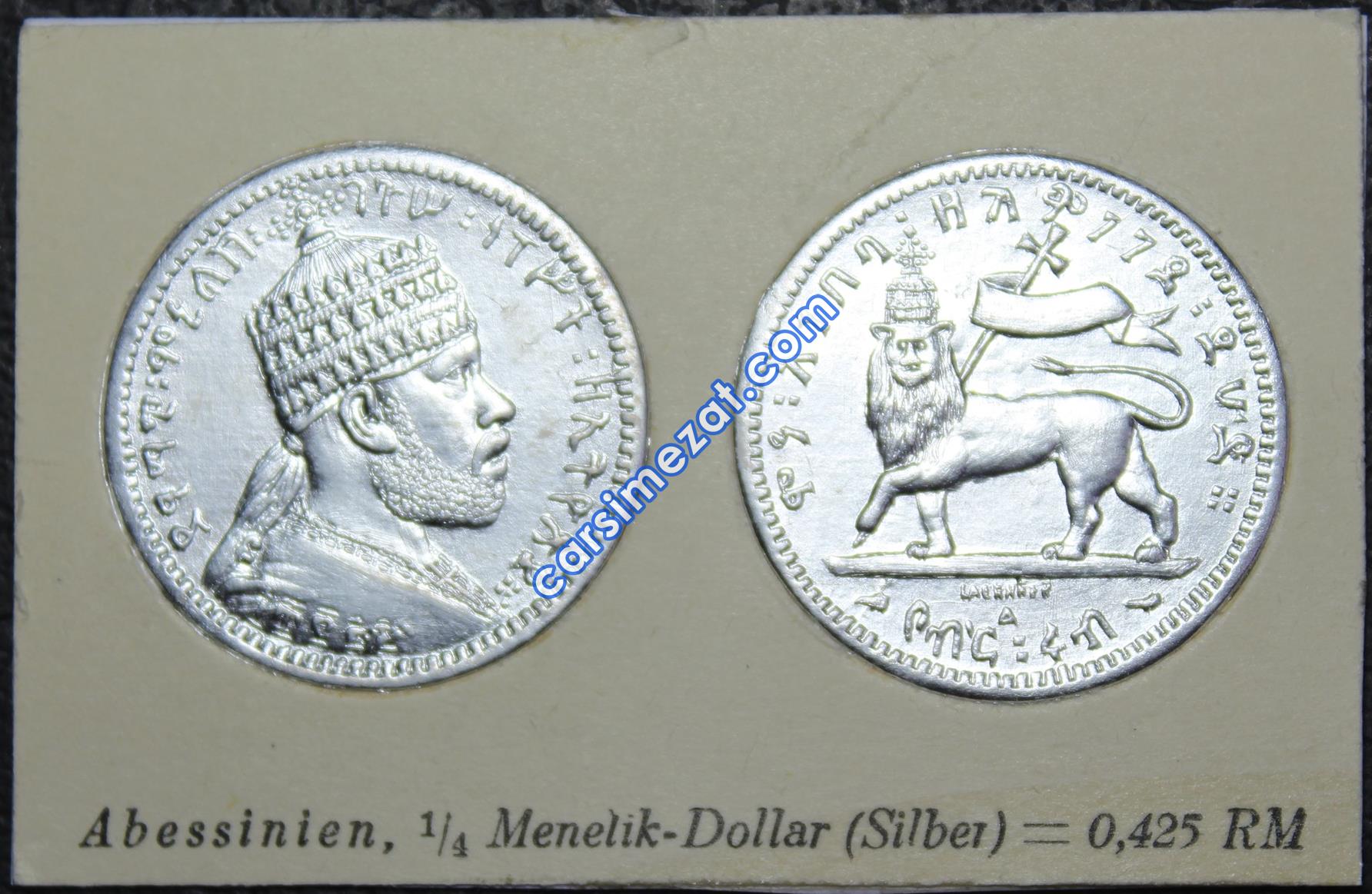 YABANCI MADENİ KOLEKSİYONERLER İÇİN 20. YÜZYIL BAŞINDA HAZIRLANAN GÜMÜŞ VARAK GOFRE ETİYOPYA 1/4 MENELİK