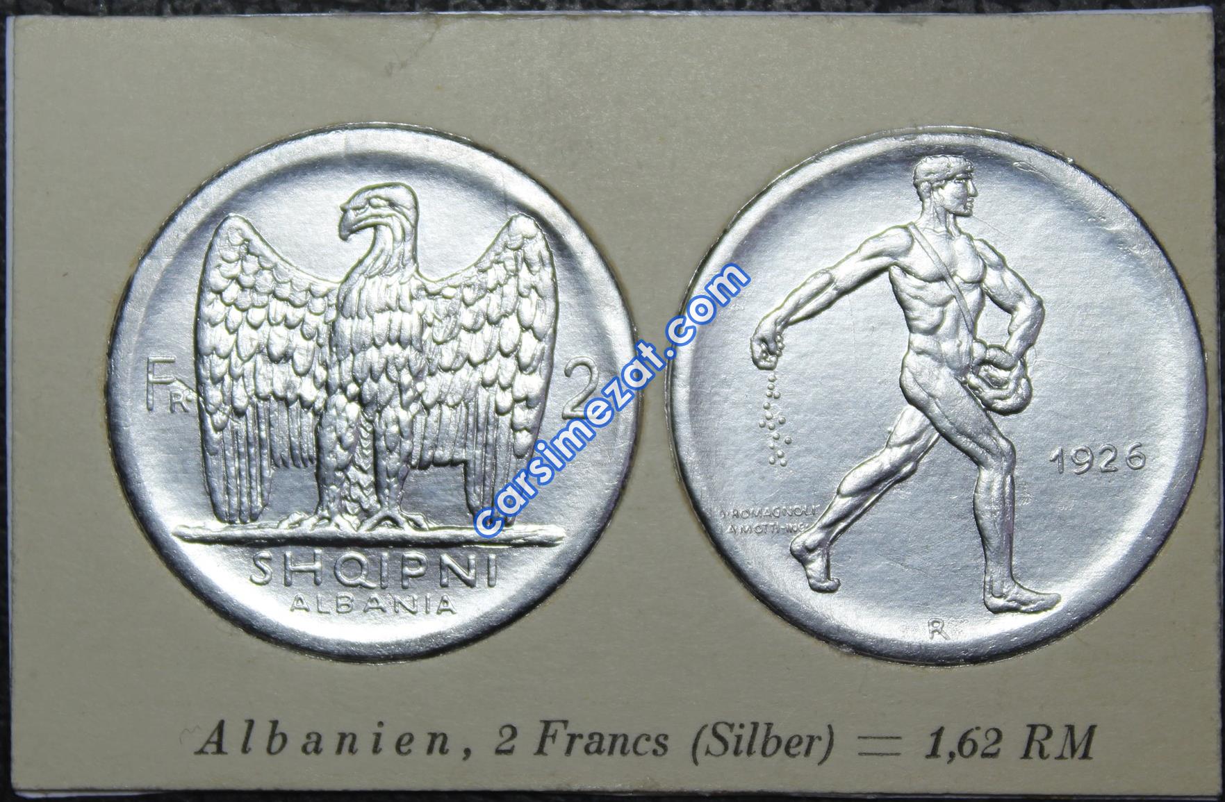 YABANCI MADENİ KOLEKSİYONERLER İÇİN 20. YÜZYIL BAŞINDA HAZIRLANAN GÜMÜŞ VARAK GOFRE ARNAVUTLUK 2 FRANGA 1926