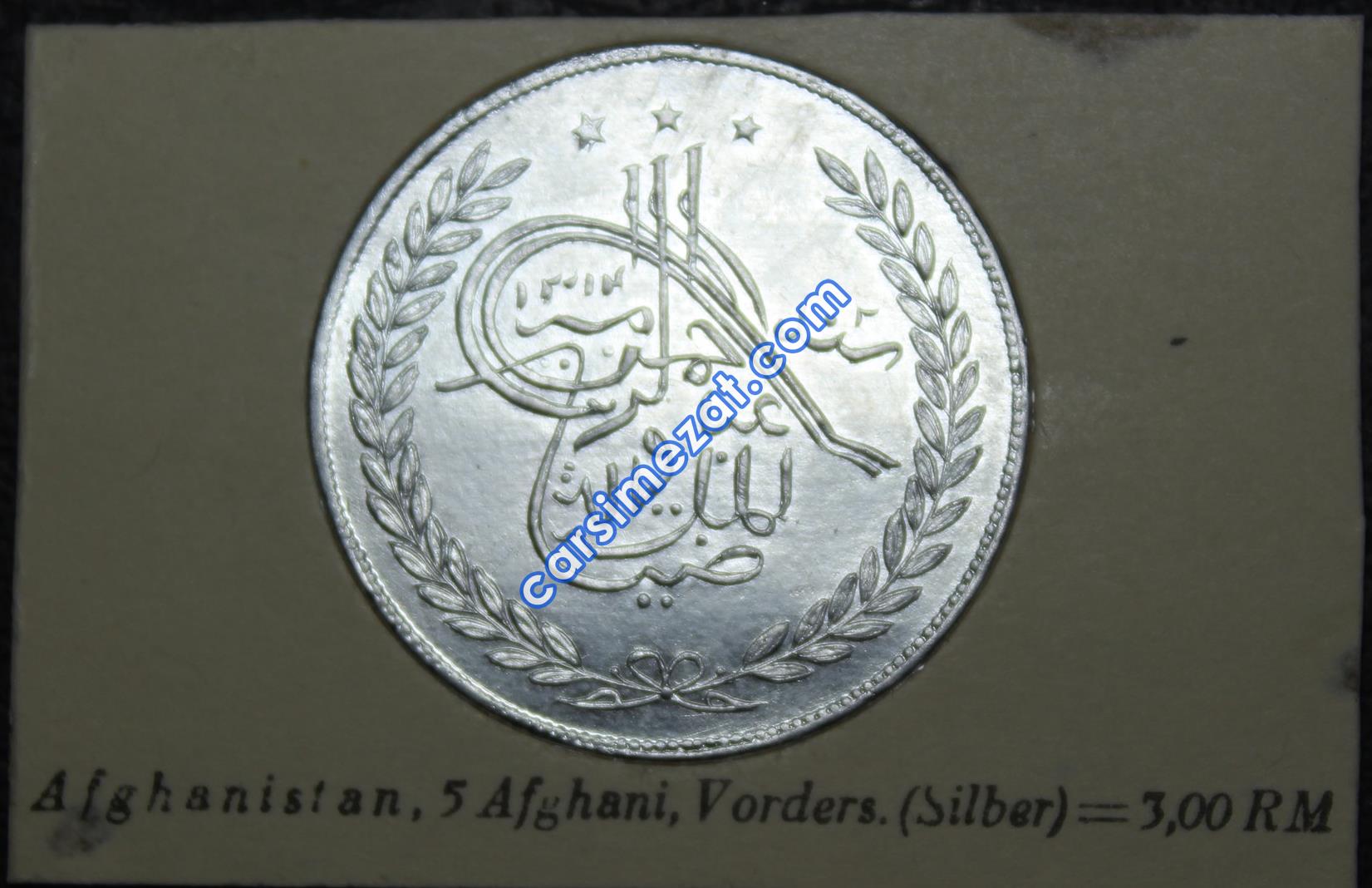 YABANCI MADENİ KOLEKSİYONERLER İÇİN 20. YÜZYIL BAŞINDA HAZIRLANAN GÜMÜŞ VARAK GOFRE AFGANİSTAN 5 AFGHANI ARKALI-ÖNLÜ