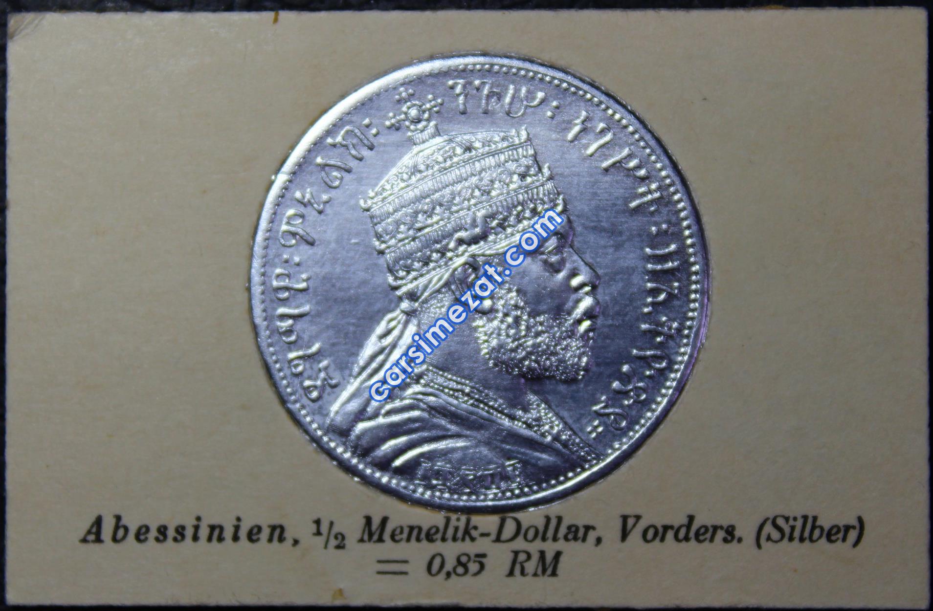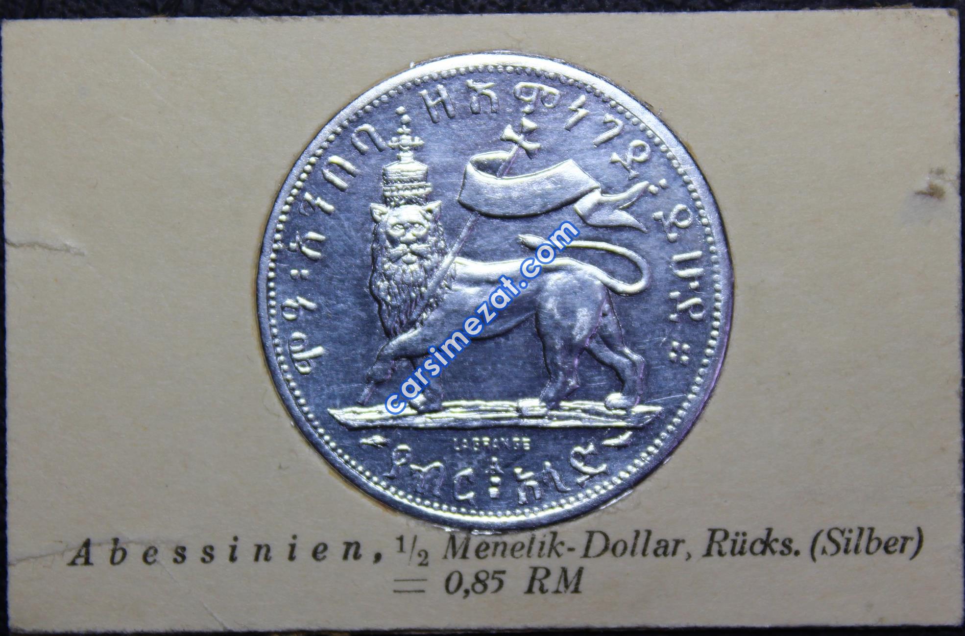 YABANCI MADENİ KOLEKSİYONERLER İÇİN 20. YÜZYIL BAŞINDA HAZIRLANAN GÜMÜŞ VARAK GOFRE ETİYOPYA 1/2 MENELİK 1895-1897 ARKALI-ÖNLÜ