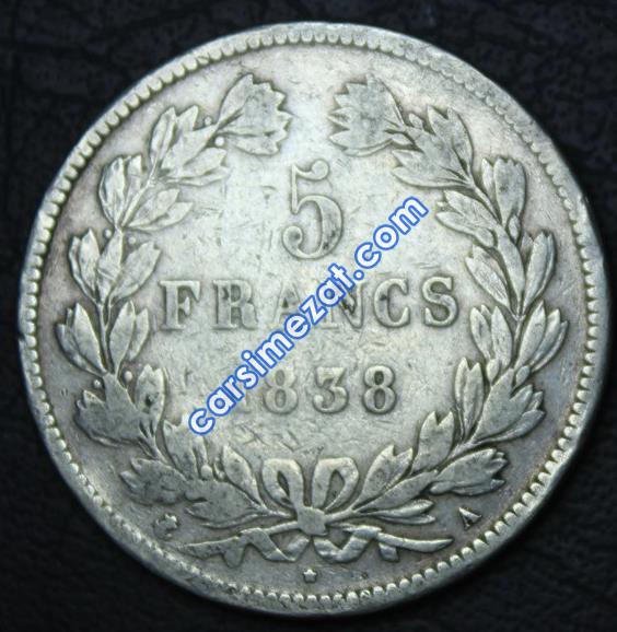 YABANCI MADENİ GÜMÜŞ FRANSA 5 FRANCS 1838 ÇÇT 24gr