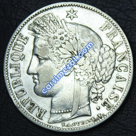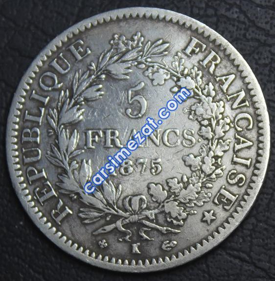 YABANCI MADENİ GÜMÜŞ FRANSA 5 FRANCS 1875 ÇÇT 24gr