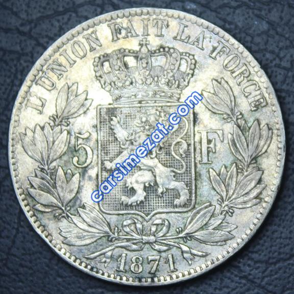 YABANCI MADENİ GÜMÜŞ BELÇİKA 5 FRANCS 1871 ÇA 24gr