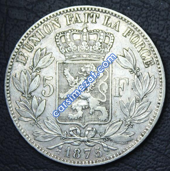 YABANCI MADENİ GÜMÜŞ BELÇİKA 5 FRANCS 1875 ÇA 24gr