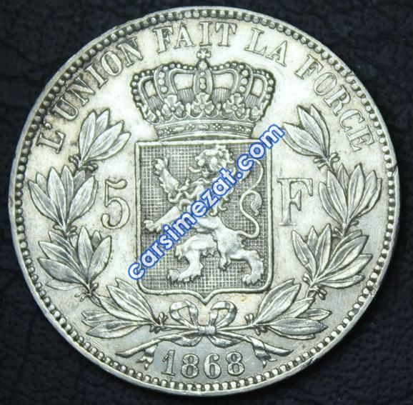 YABANCI MADENİ GÜMÜŞ BELÇİKA 5 FRANCS 1868 ÇA 24gr