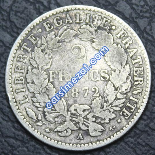 YABANCI MADENİ GÜMÜŞ FRANSA 2 FRANCS 1872 A 10 GRAM ÇT