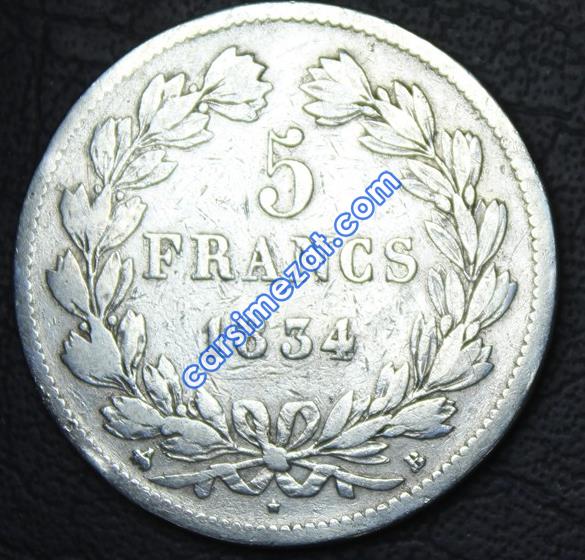 YABANCI MADENİ GÜMÜŞ FRANSA 5 FRANCS 1834 ÇT 24gr