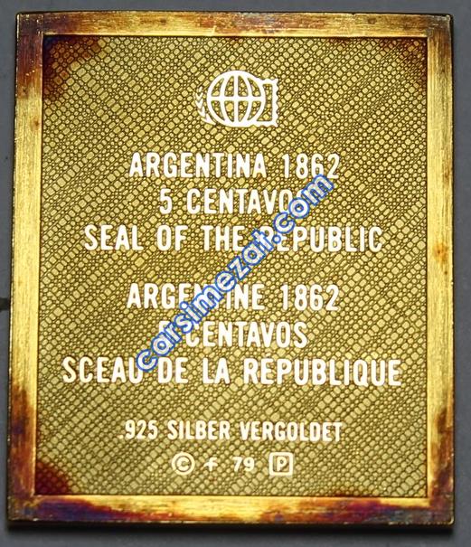 YABANCI MADENİ KOLEKSİYON AMAÇLI 925 AYAR GÜMÜŞ ÜZERİNE ALTIN KAPLAMA ARJANTİN 1862 PUL 10 GRAM ÇİL