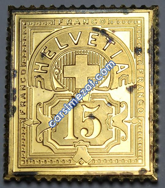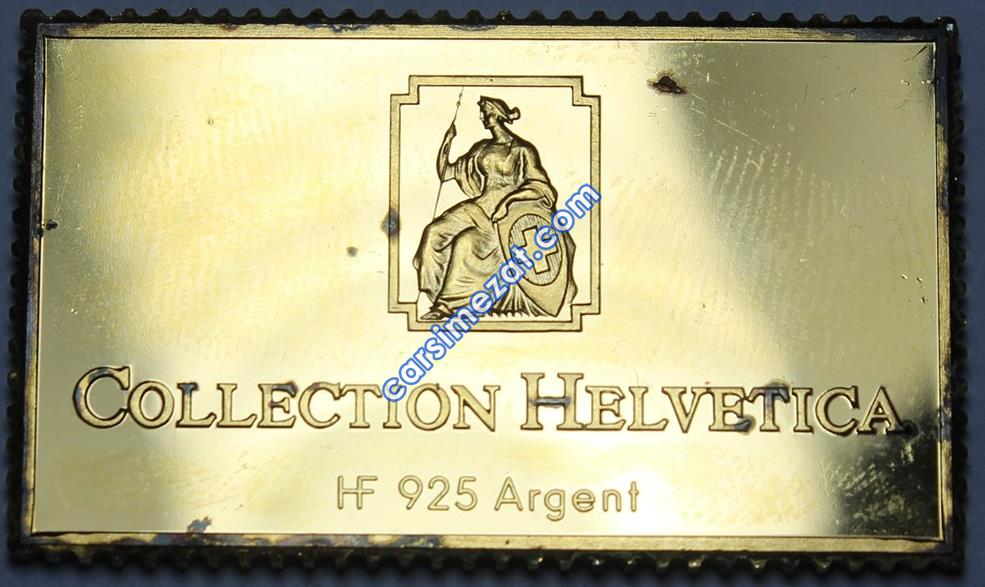 YABANCI MADENİ KOLEKSİYON AMAÇLI 925 AYAR GÜMÜŞ ÜZERİNE ALTIN KAPLAMA İSVİÇRE PUL 13 GRAM ÇİL