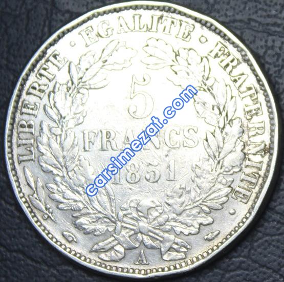 YABANCI MADENİ GÜMÜŞ FRANSA 5 FRANCS 1851 ÇÇT 24gr