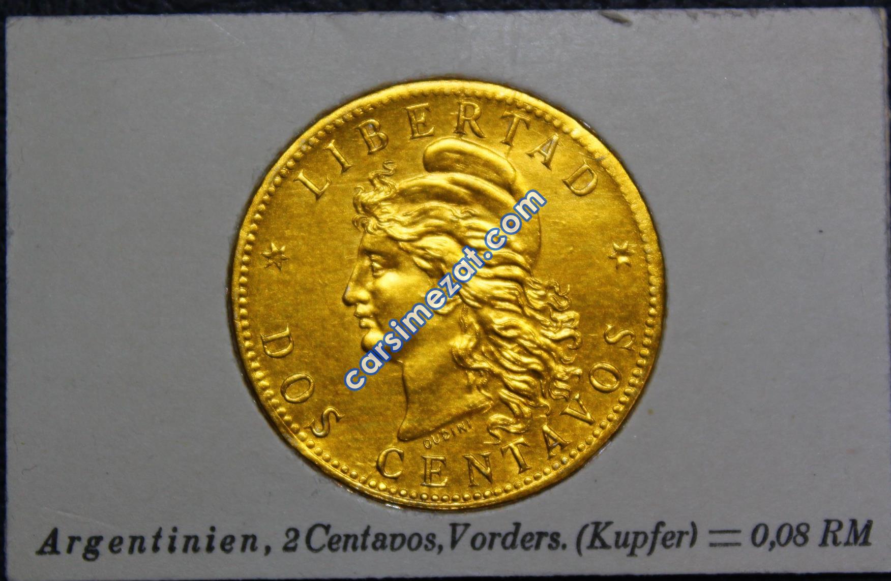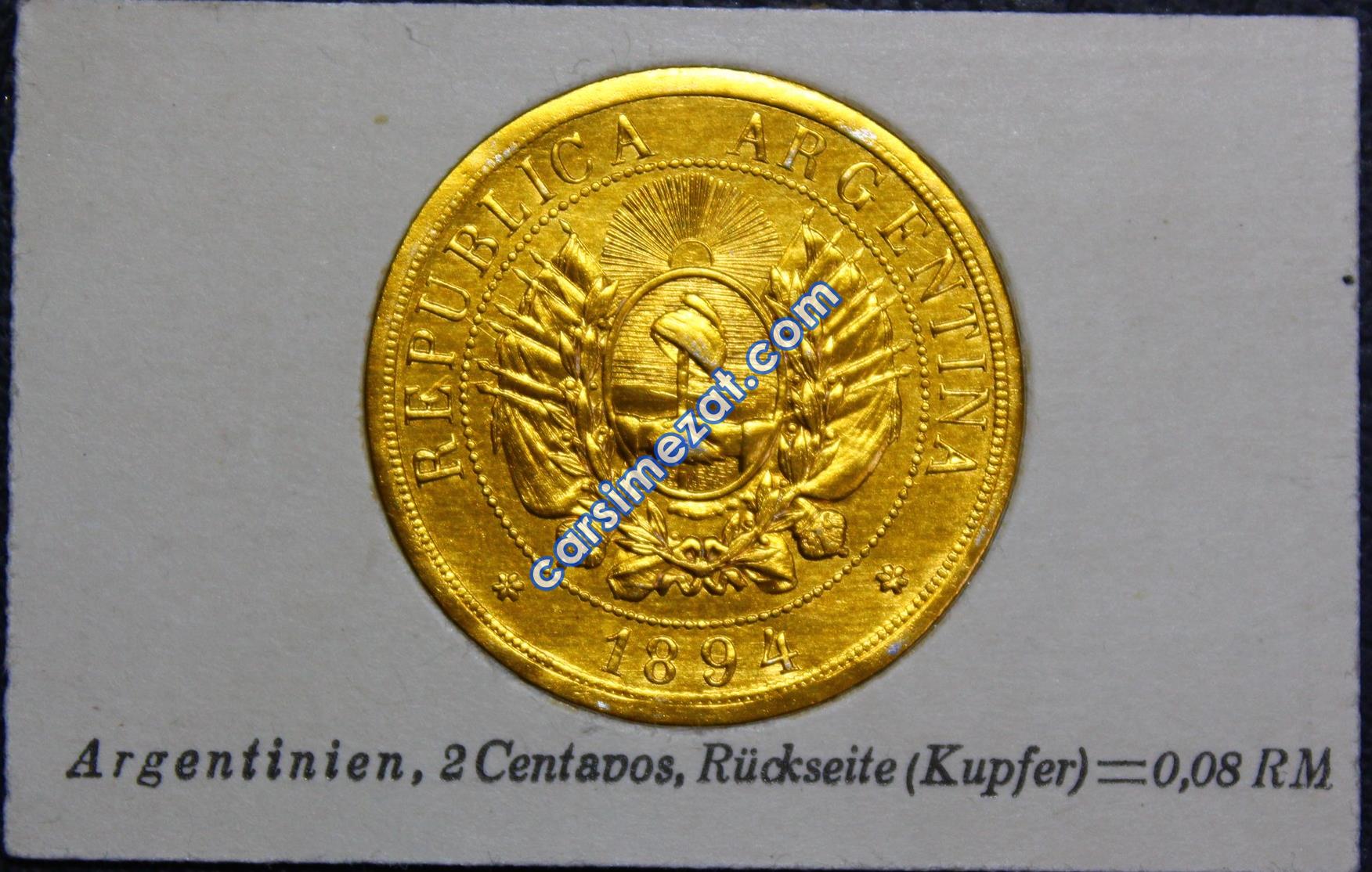 YABANCI MADENİ KOLEKSİYONERLER İÇİN 20. YÜZYIL BAŞINDA HAZIRLANAN ALTIN VARAK GOFRE ARJANTİN 2 CENTAVO 1894 ARKALI ÖNLÜ