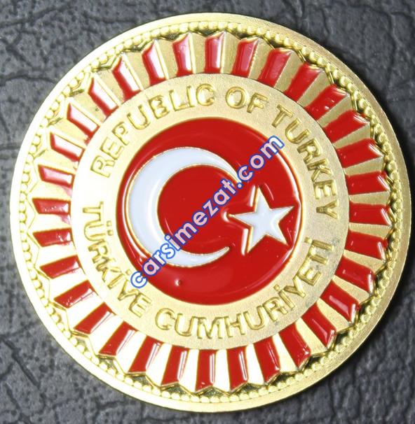 YABANCI MADENİ TÜRKİYE CUMHURİYETİ MİNELİ ALTIN KAPLAMA MADALYON ÇİL