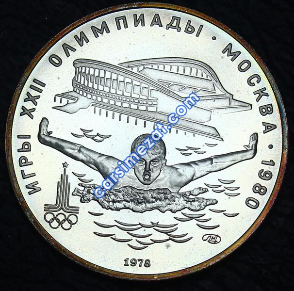 YABANCI MADENİ GÜMÜŞ HATIRA MOSKOVA OLİMPİYATLARI 1980 YÜZME 5 RUBLE 1978 16,67 GRAM ÇİL