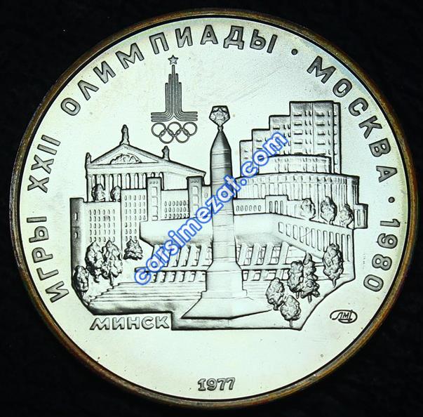 YABANCI MADENİ GÜMÜŞ HATIRA MOSKOVA OLİMPİYATLARI 1980 MINSK 5 RUBLE 1977 16,67 GRAM ÇİL