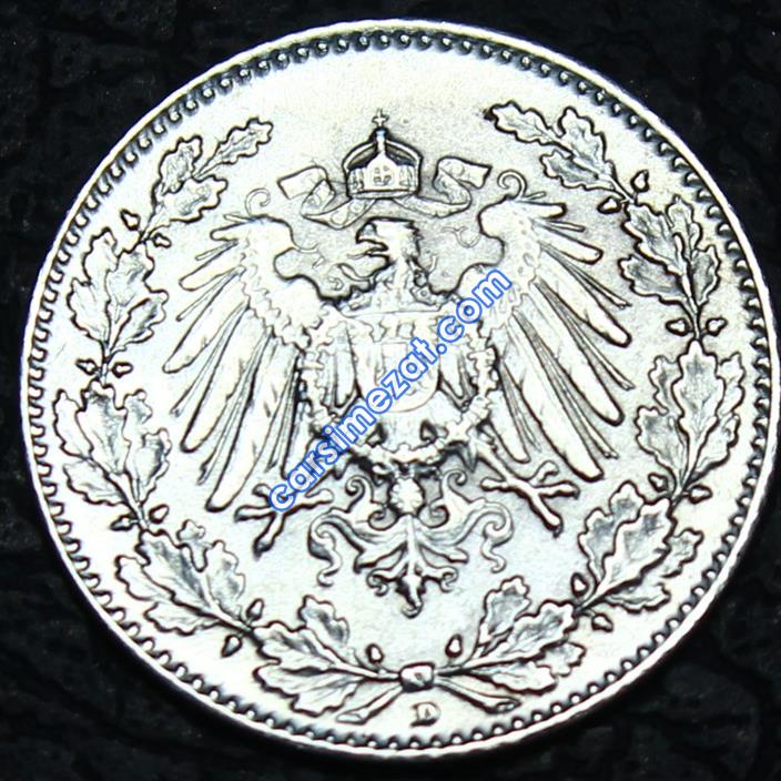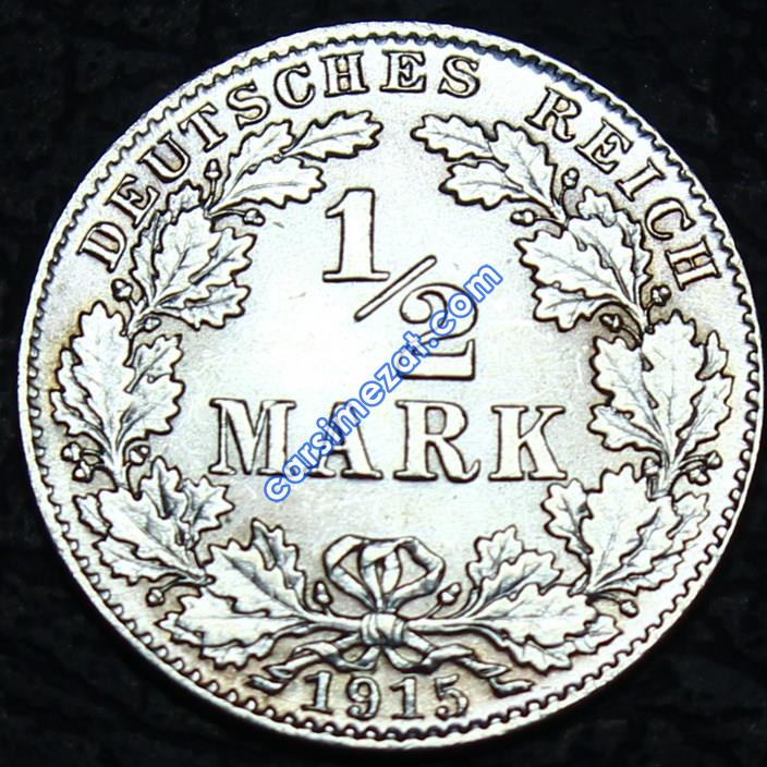 YABANCI MADENİ GÜMÜŞ ALMANYA 1/2 MARK 1915 2,8 GRAM ÇİL