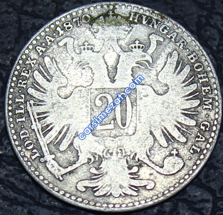 YABANCI MADENİ GÜMÜŞ AVUSTURYA HABSBURG 20 KREUZER 1870 2,7 GRAM ÇT