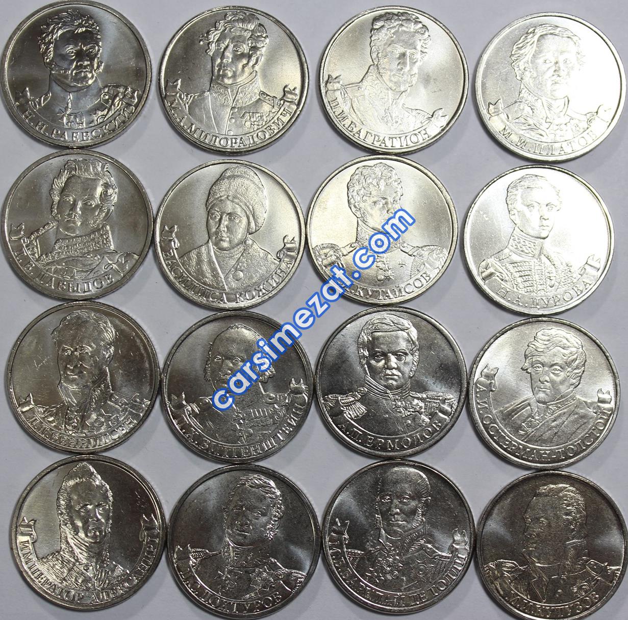YABANCI MADENİ RUSYA LİDER VE KAHRAMANLAR SERİSİ 2 RUBLE 2012 16 LI LOT ÇİL