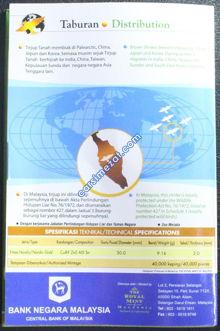 YABANCI MADENİ MALEZYA 2005 HATIRASI BALIKÇI KUŞU AÇIKLAMALI FÖYÜNDE