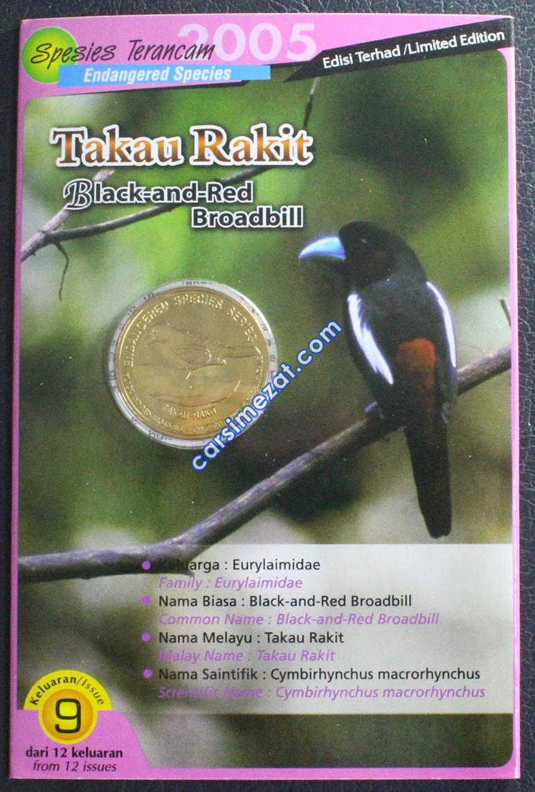 YABANCI MADENİ MALEZYA 2005 HATIRASI KIRMIZI SİYAH BROADBILL AÇIKLAMALI FÖYÜNDE