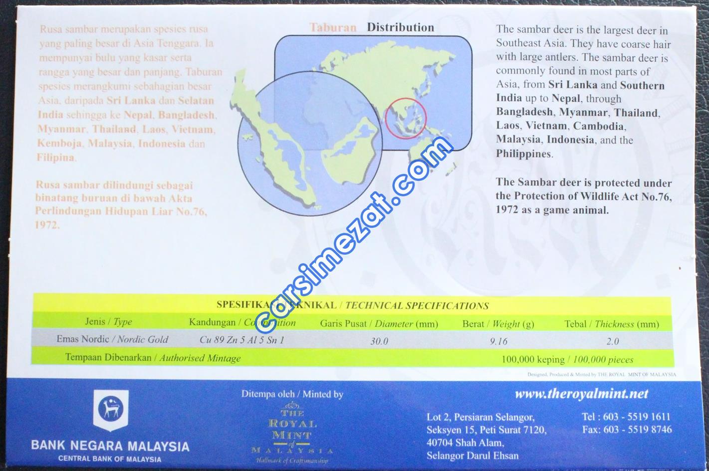 YABANCI MADENİ MALEZYA 2003 HATIRASI SAMBAR GEYİĞİ AÇIKLAMALI FÖYÜNDE