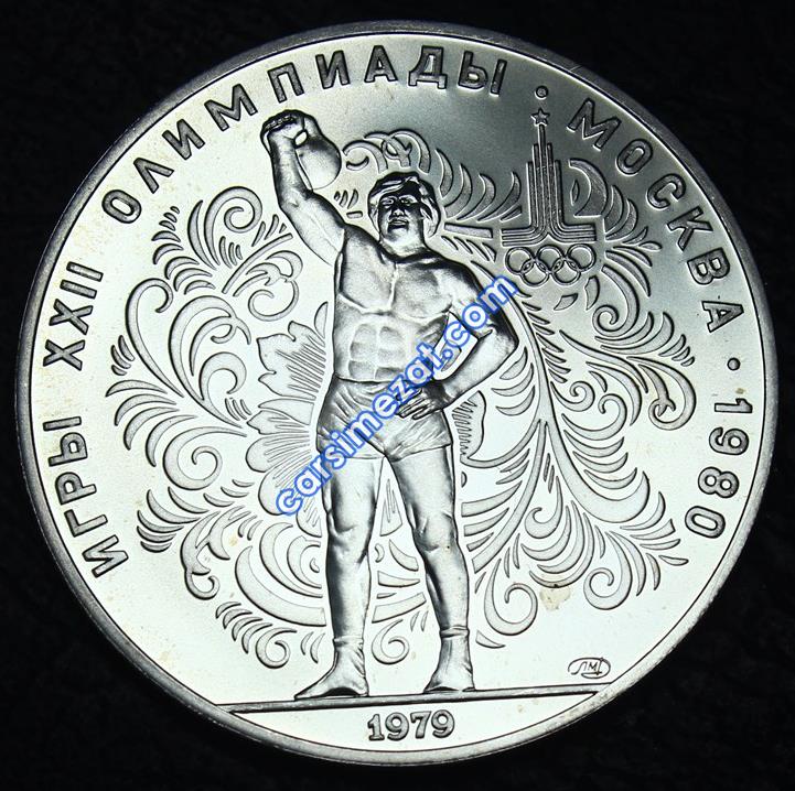 YABANCI MADENİ GÜMÜŞ HATIRA MOSKOVA OLİMPİYATLARI 1980 GÜLLE ATMA 5 RUBLE 1979 16,67 GRAM ÇİL
