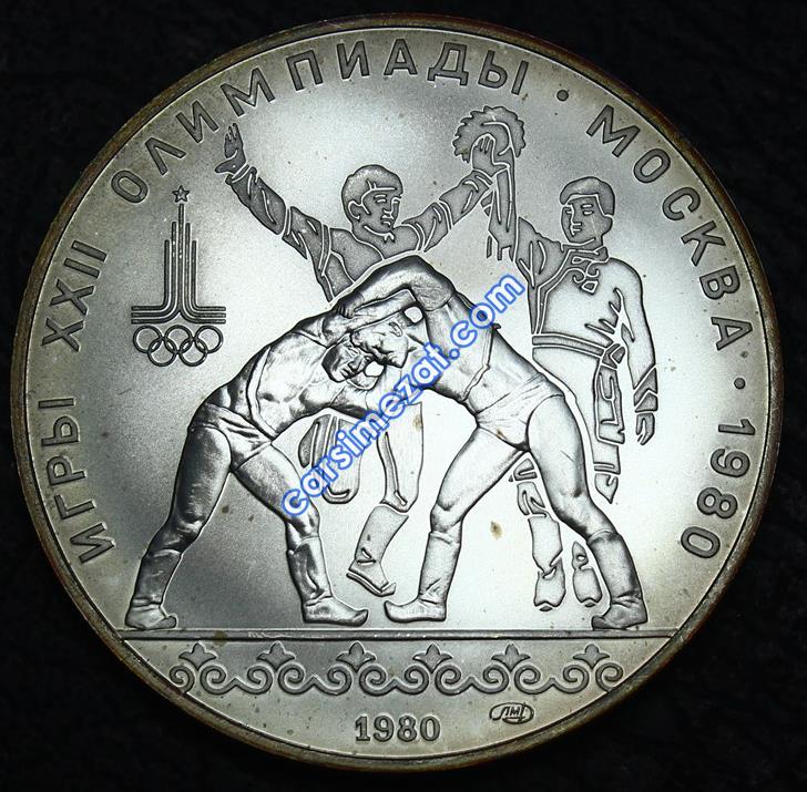 YABANCI MADENİ GÜMÜŞ HATIRA MOSKOVA OLİMPİYATLARI 1980 GÜREŞ 10 RUBLE 1977 33,1 GRAM ÇİL