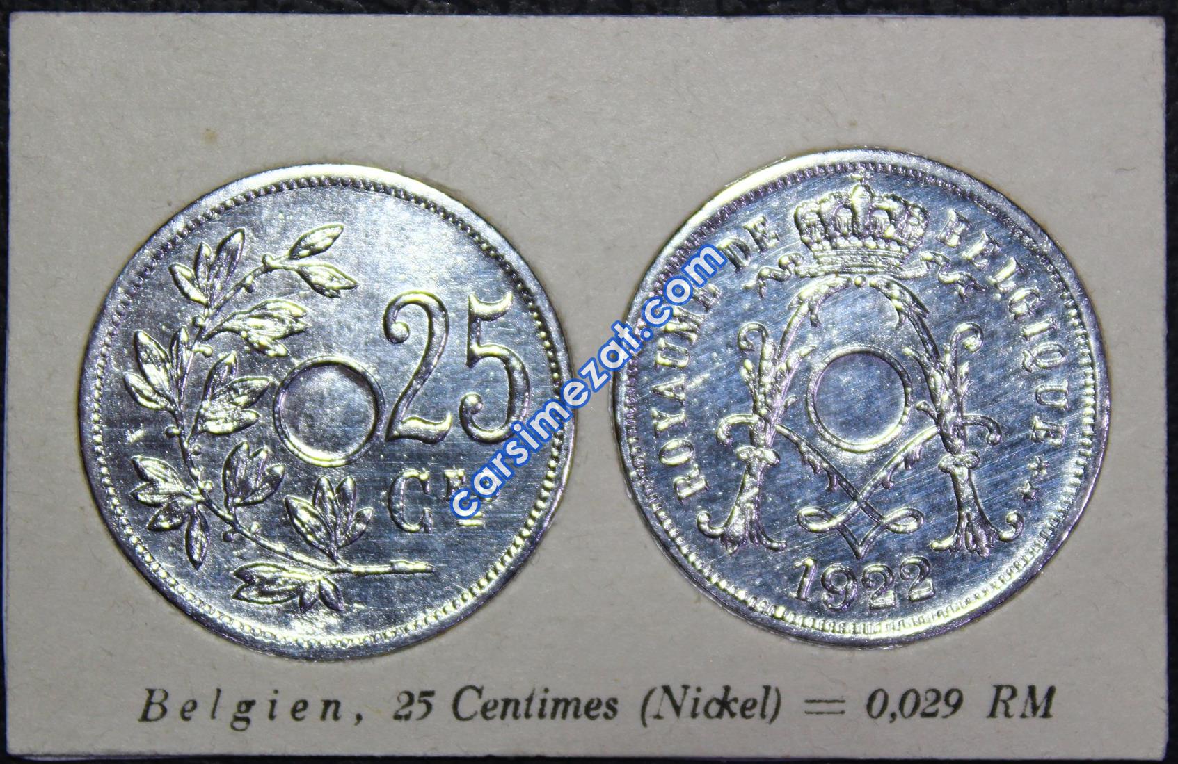 YABANCI MADENİ KOLEKSİYONERLER İÇİN 20. YÜZYIL BAŞINDA HAZIRLANAN GÜMÜŞ VARAK GOFRE BELÇİKA 25 CENTIME 1922