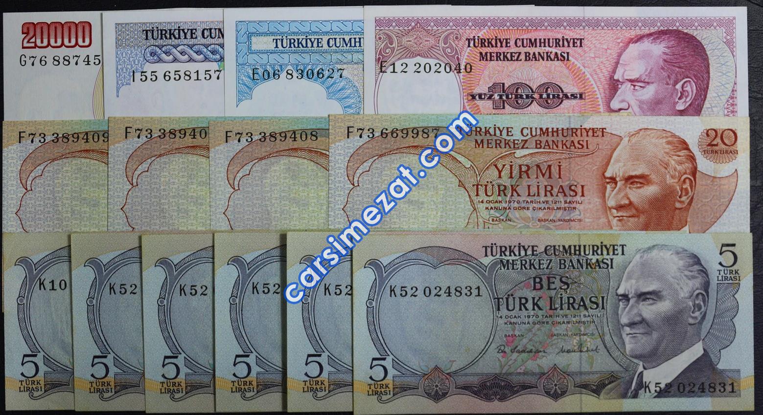 CUMHURİYET KAĞIT 7. EMİSYON 5000 LİRA 14 LÜ LOT TEMİZ HALİYLE