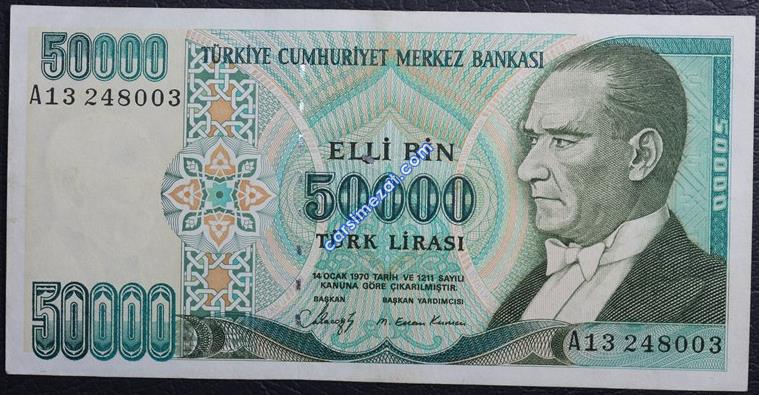 CUMHURİYET KAĞIT 7. EMİSYON 50.000 LİRA K90 ÇİL