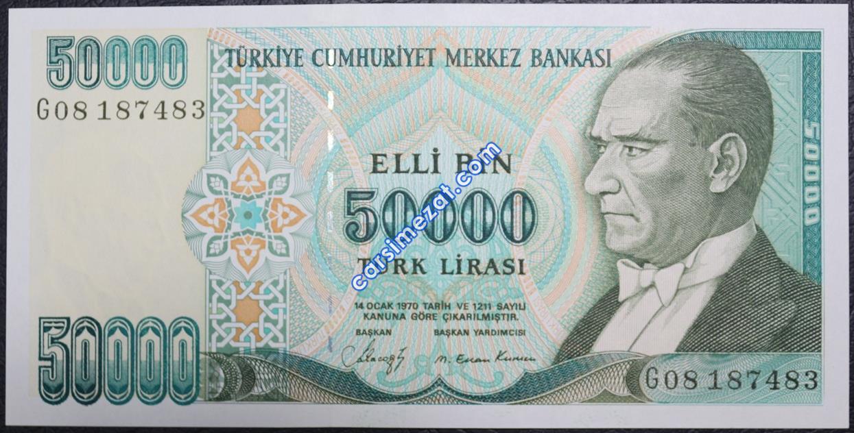 CUMHURİYET KAĞIT 7. EMİSYON 50.000 LİRA G08 ÇİL