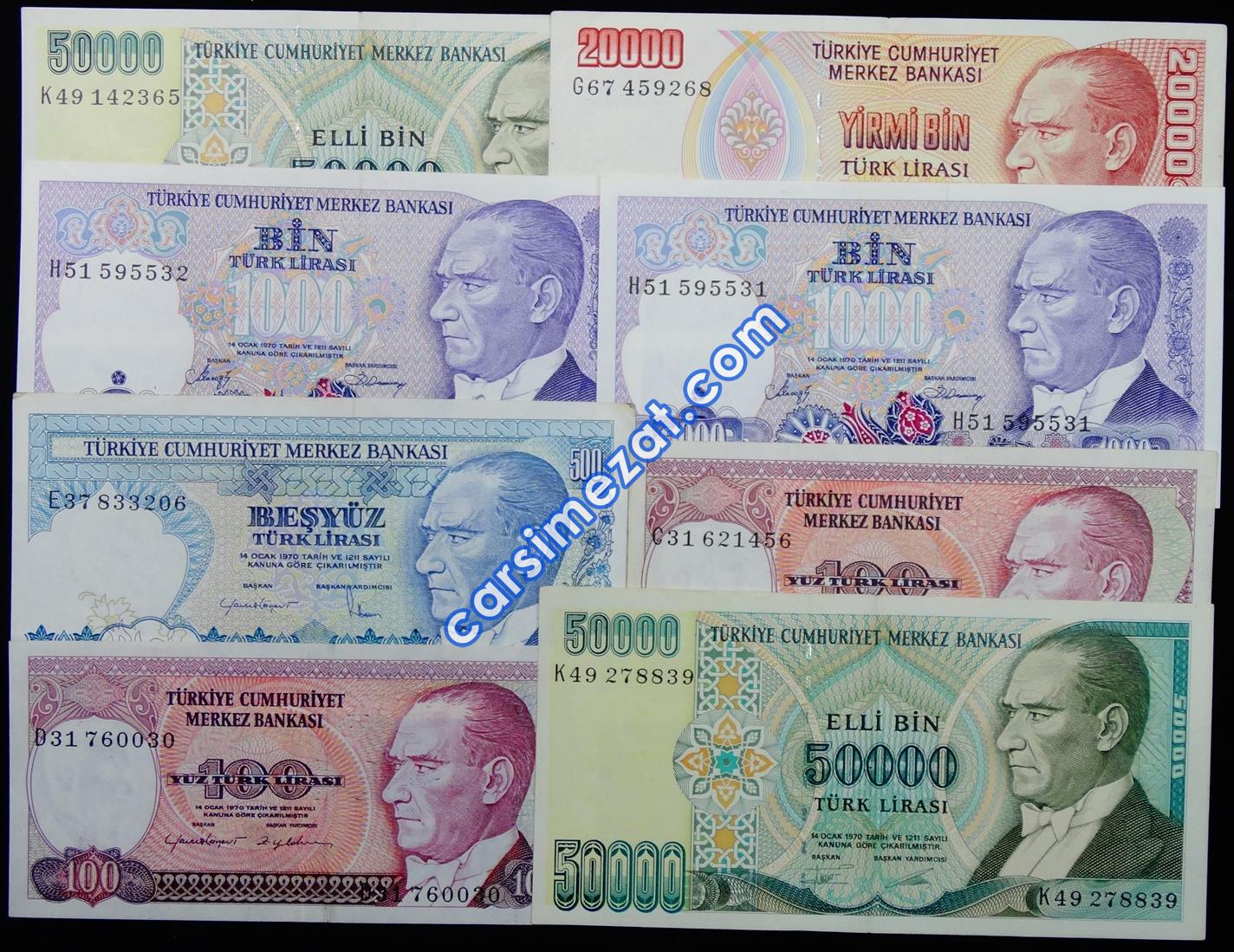 CUMHURİYET KAĞIT 7 EMİSYON DESTE 50.000 LİRA D08 TAM SERİ ÇİL