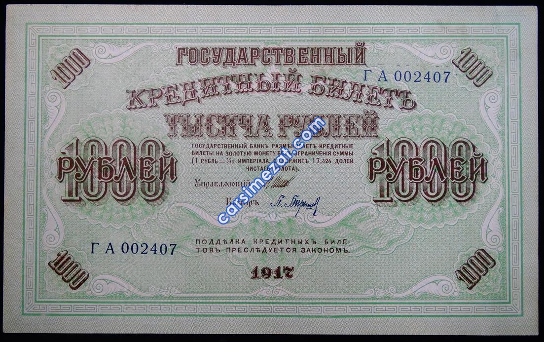 YABANCI KAĞIT RUSYA 1000 RUBLE 1917 ÇÇT