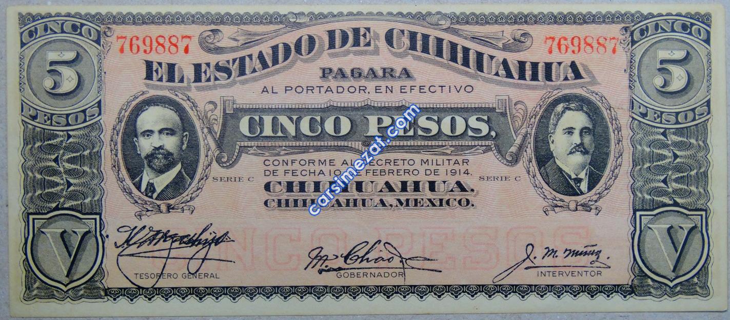 YABANCI KAĞIT MEKSİKA 5 PESO 1914 ÇİL---