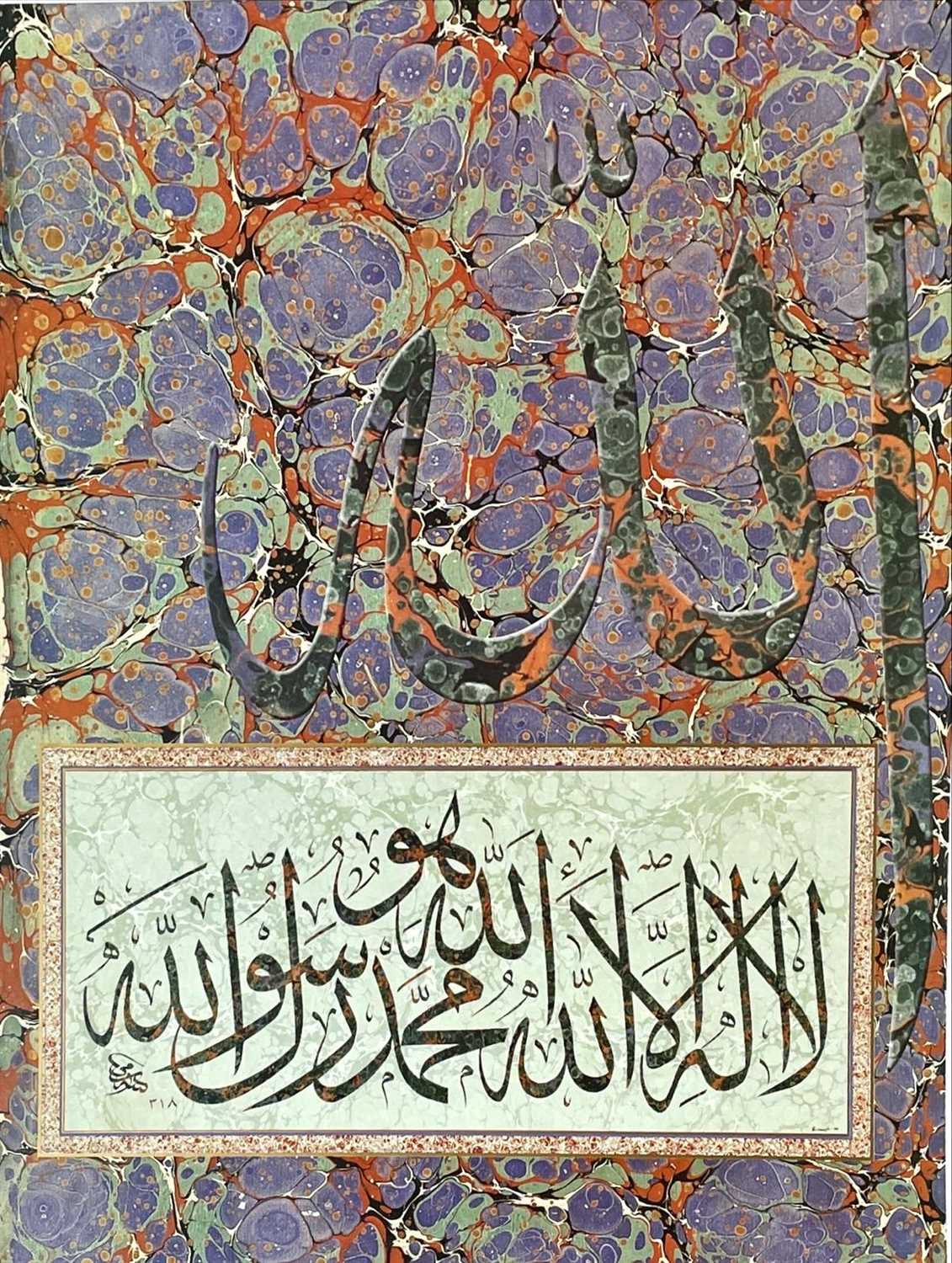 baskı hat hattat Sami efendi ebru Alpaslan Babaoğlu kelime-i tevhid ebat 50x40
