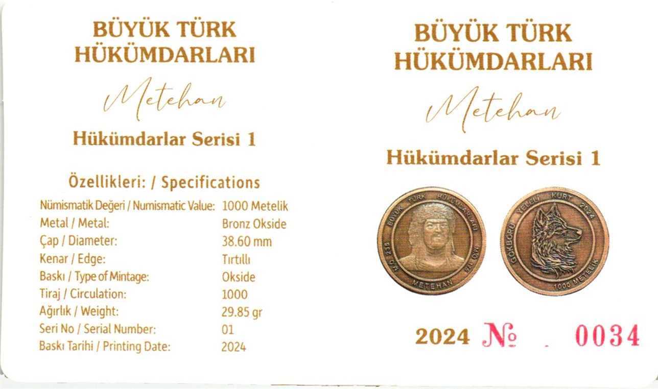 BÜYÜK TÜRK HÜKÜMDARLARI SERİSİ 1 - METEHAN 1.000 METELİK BRONZ OKSİDE SERTİFİKALI ÇİL