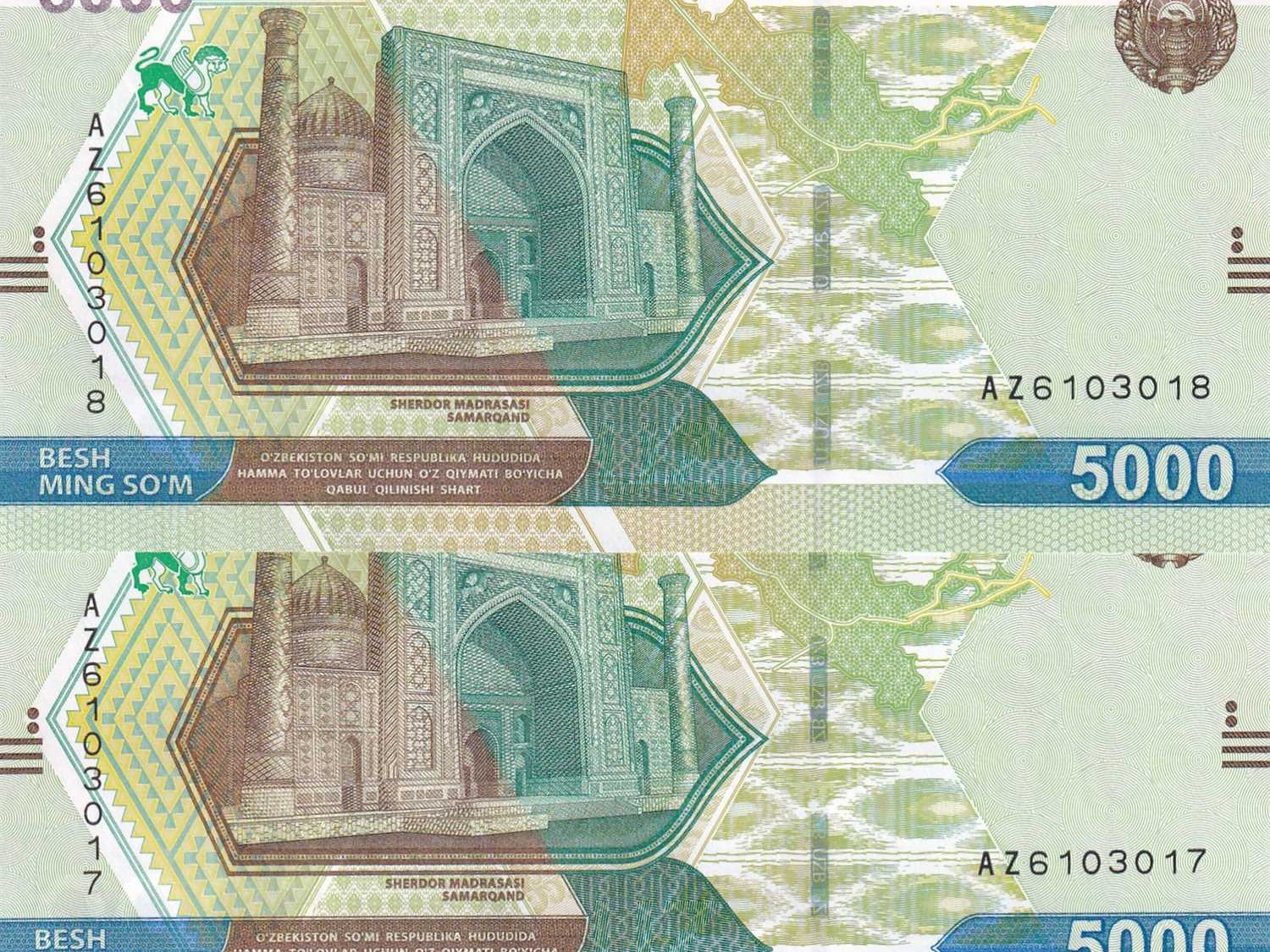 ÖZBEKİSTAN 5.000 SOM SERİ TAKİPLİ ÇİL