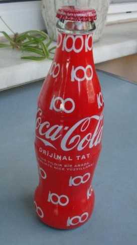 COCO COLA 100. YIL KOLEKSİYONLUK ŞİŞE AÇILMAMIŞ DOLU