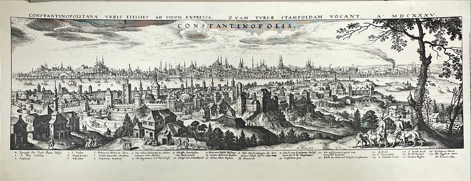 CONSTANTINOPEL.-Matthew Merian (1593-1650). Constantinopolis - Constantinopolis 1635 tarihli haritanın tıpkı basım haritası ebat 75x35 çerçeveli