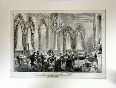 Constantinople Doğu Sorunu, Deniz Kuvvetleri Komutanlığı Konferansı, Costantinopolis Gravür: Saffet paşa, Ethem Paşa ve Yabancı Generallerle Toplantı London News Gazetesi 6 Ocak 1877, 55x40 cm