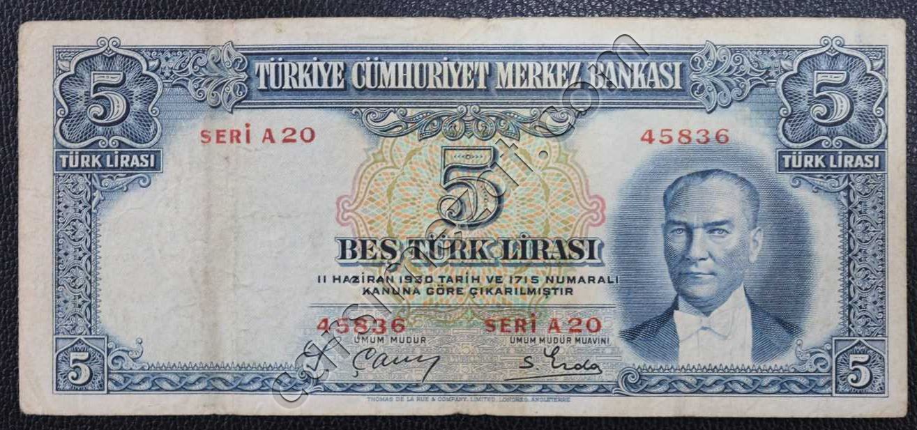 CUMHURİYET KAĞIT 2 EMİSYON 5 LİRA A20 ÇT