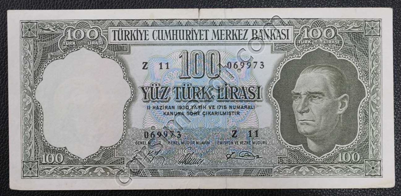 CUMHURİYET KAĞIT 5 EMİSYON 4 TERTİP 100 LİRA Z11 ÇT