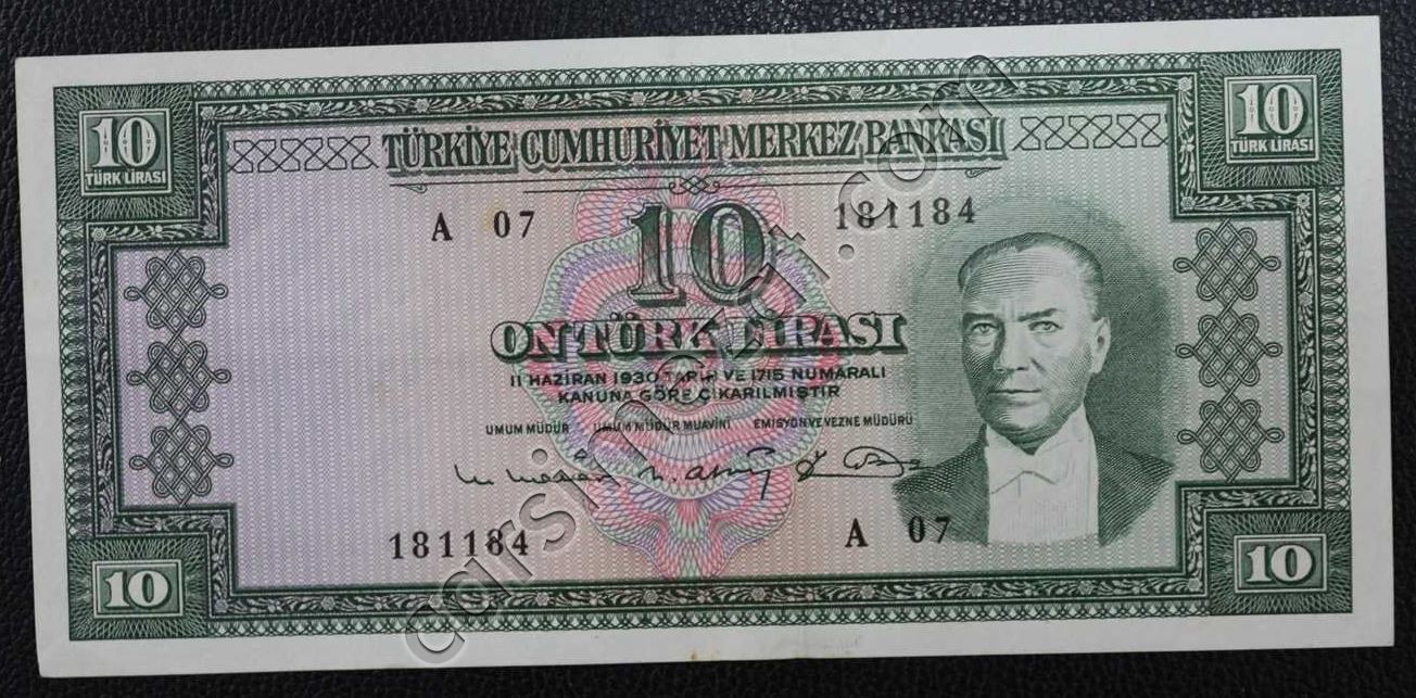 CUMHURİYET KAĞIT 5 EMİSYON 6 TERTİP 10 LİRA A07 ÇÇT