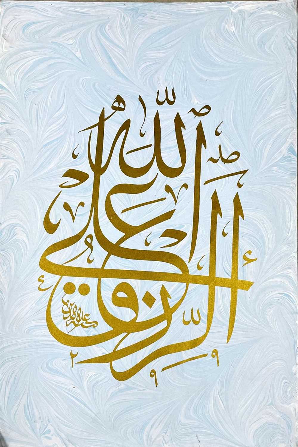 ebru üzerine yaldızlı baskı hat ebat 49x34 çerçevesiz